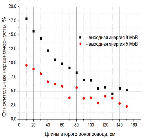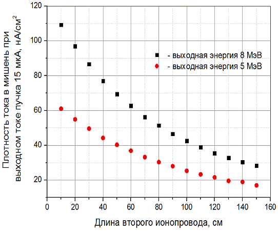 ионопровода для средних выходных энергий 5 МэВ и 8 МэВ.