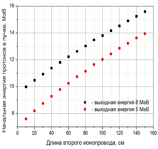 необходимо, чтобы для средней выходной энергии 8 МэВ длина второго ионопровода