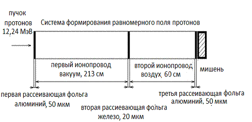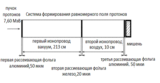 необходимо облучать равномерным полем протонов мишень с радиусом 5 см. Так как