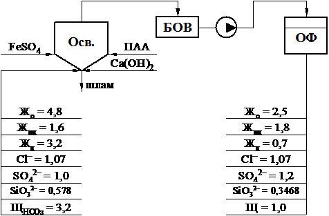 сделан пересчёт в мг-экв/кг. Затем выбиралась схема обработки воды: предочистка