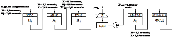 обессоливания (Н1 - А1 - Н2 - Д - А2