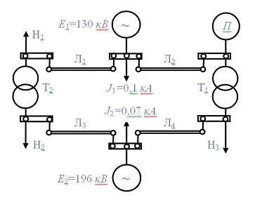 На рис. 1.1 представлен электрическая схема участка энергосистемы на