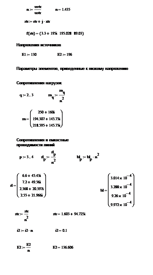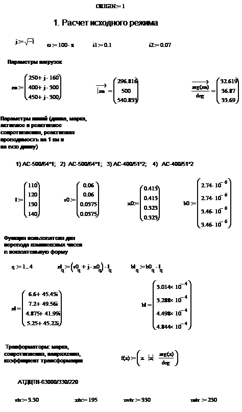 1.1. Комплексы сопротивлений линий и трансформаторов.