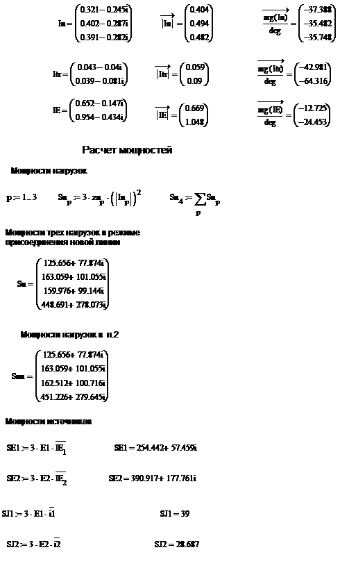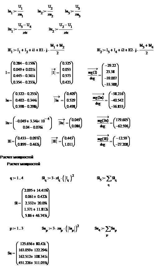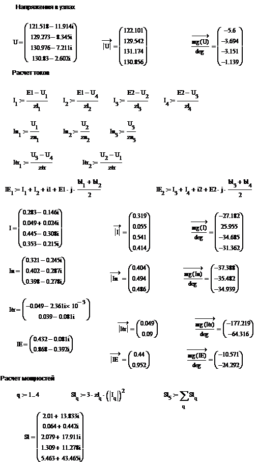 .2. Напряжения в узлах схемы и токи линий, нагрузок, трансформаторов