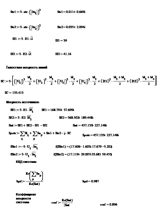 которой указаны фазные ЭДС источников в кВ, а также комплексы сопротивлений
