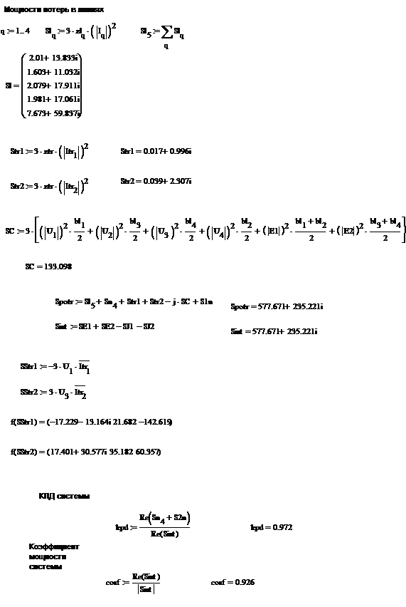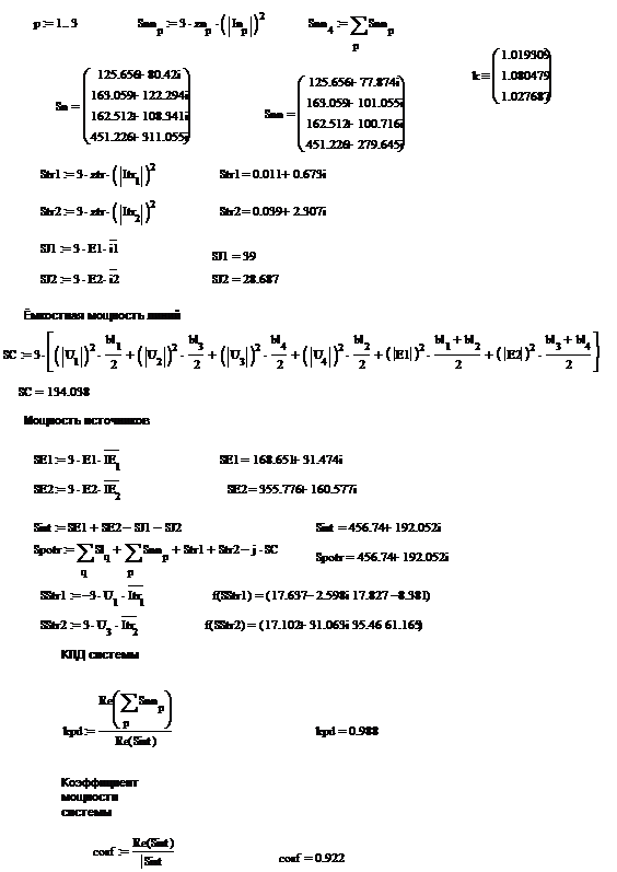 .3. Мощности нагрузок, источников и суммарные потери активной мощности в