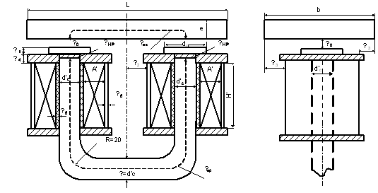 определяющий размер ядра ЭМ - диаметр сердечника ЭМ dc;