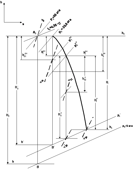 ориентировочного рабочего процесса турбины