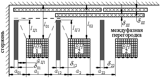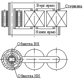 система стержневого типа проектируемого трансформатора показана на рис. 1.