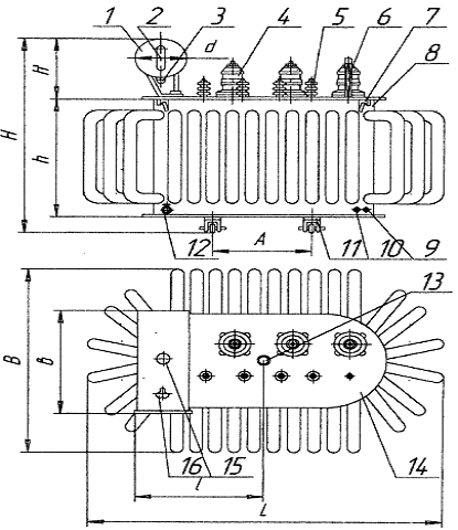 Трансформатор - силовой двухобмоточный с масляным охлаждением.