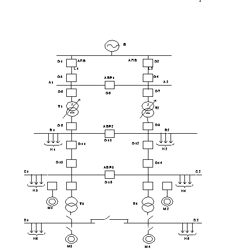 устройством автоматического ввода резерва (АВР) на секционного выключателе и