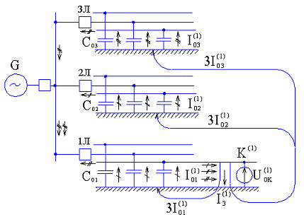В случае замыкания на землю на 2Л или 3Л линиях по 1Л к шинам