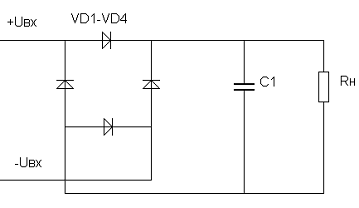 Выпрямитель собран на диодах, образующих мостовую схему которая