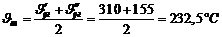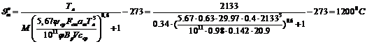 средняя расчетная температура продуктов сгорания, °С.