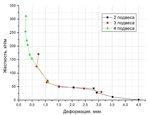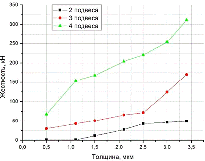 напряжения срабатывания исполнительного элемента при различных жесткостях