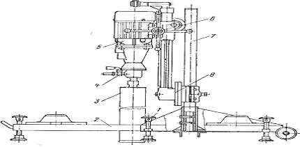 цилиндрической опорной колонки, реечного механизма и узла привода с подачей к