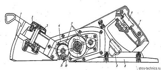 - электродвигатель, 2 - редуктор, 3 - пильная
