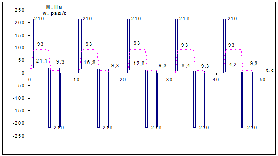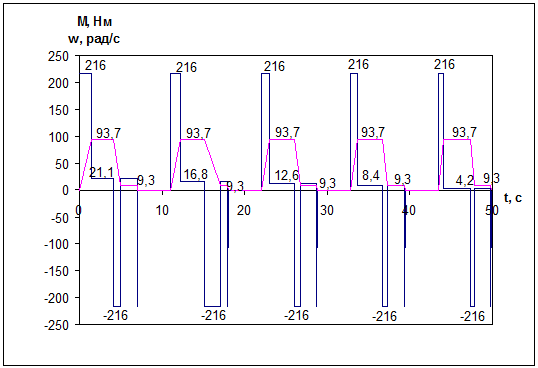 7. Построение точной нагрузочной диаграммы ω, М=f (t) и окончательная проверка двигателя
