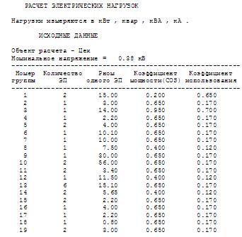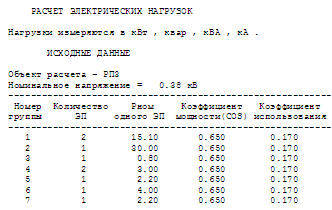 Расчет электрических нагрузок