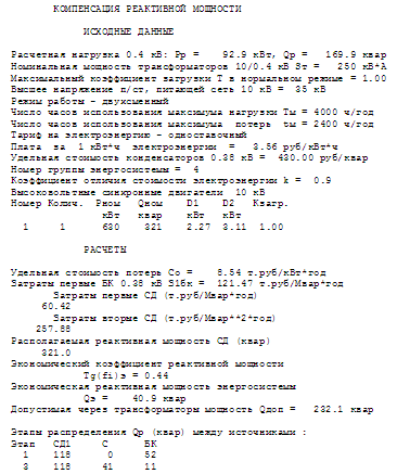 Выбор компенсирующих устройств