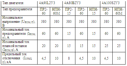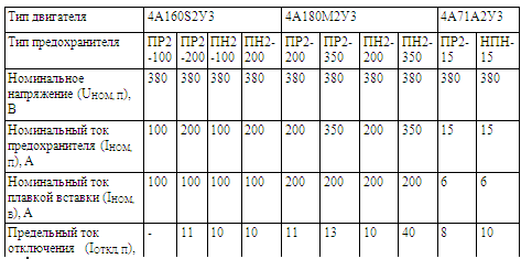 Выбор плавких предохранителей