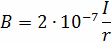 токов, особенно в линиях электропередач. Индукция В определяется по формуле: