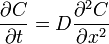 Второй закон Фика связывает пространственное и временное изменения концентрации