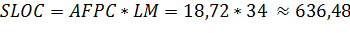 Т.к. данная программа будет разрабатываться среде C++ Builder6, что по таблице значений языкового множителя (LM) равносильно С++, то значение LM равно 34.