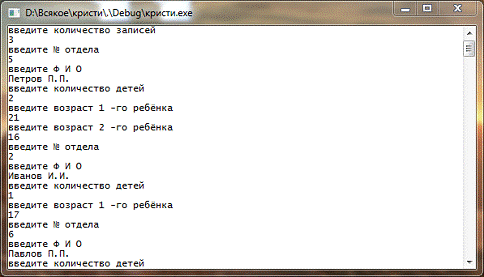 Файл “5.cpp”(Распечатка файла с совершеннолетними детьми)