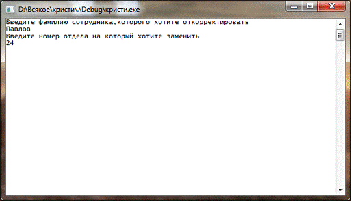 откорректировать\n");(str);(str);("Введите номер отдела на который