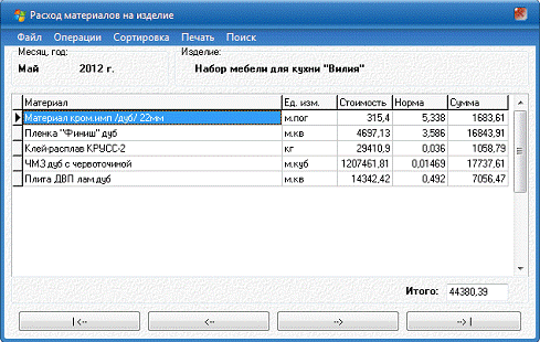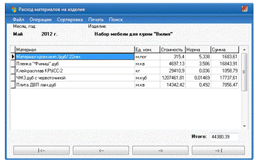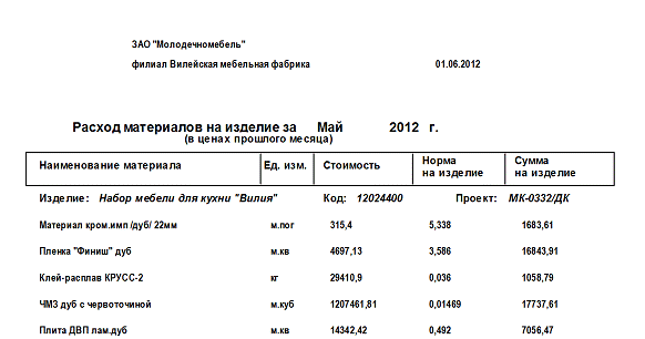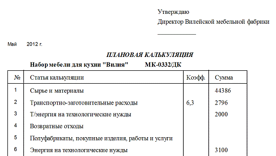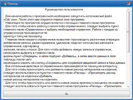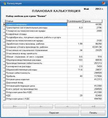 showmessage('Калькуляция по данному изделию на