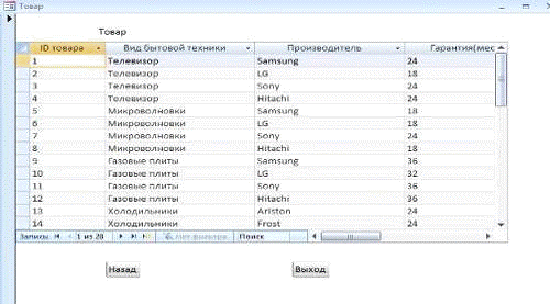 Источник данных: таблица Товар. Подчиненная форма Товар.