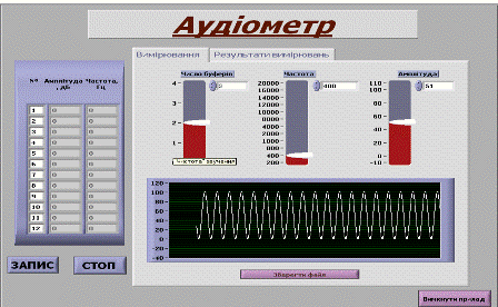 Активировать программу можно путём запуска файла Аудіометр.vi.