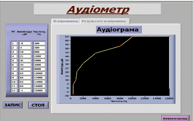 слухового анализатора человека путем определения порогов слышимости. Интерфейс