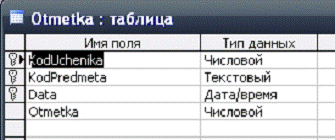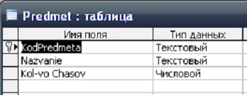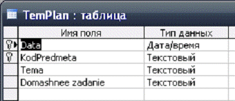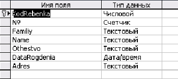 таблицы. Определяется, есть ли среди них первичный ключ, и по каким полям