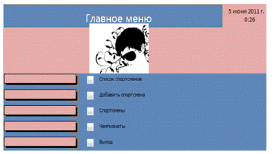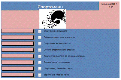 Рис.23. Главная кнопочная форма базы данных «СПОРТ»
