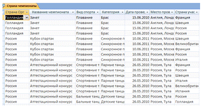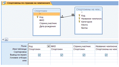 Приведем текст запроса в языке SQLCount([Спортсмены по странам на чемпионате].ФИО) AS