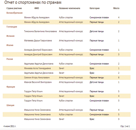 спортсменов». В результате появится отчет, представленный на Рис.26.
