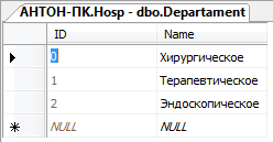 <> (select top 1 Name from dbo.Hospital))'Введеное имя больницы
