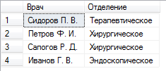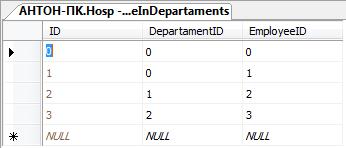 'Врач',.Name as 'Отделение'eid inner join Employee eeid.EmployeeID = e.IDjoin