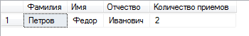 'Фамилия',.Name as 'Имя',.MiddleName as 'Отчество',.receptions as 'Количество