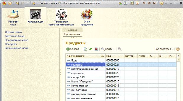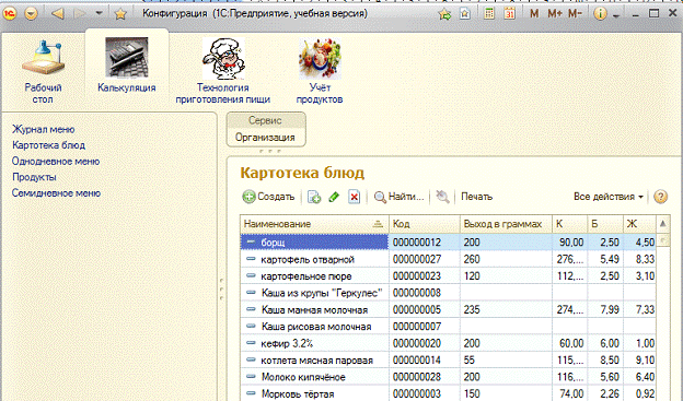 автоматизированной информационной системы расчёта меню питания, обеспечивающей