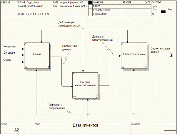 соответствии со стандартом IDEF0 (иерархия SADT-диаграмм)