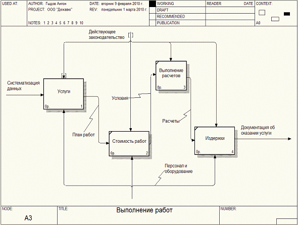 Рис.5. Структурная IDEF0 модель. Декомпозиция работы "Выполнение