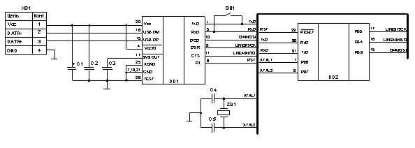 внесения изменений в схему устройства был внесен интерфейс USB для
