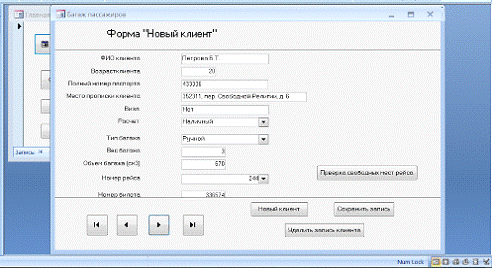 регистрационных данных о новых клиентах были созданы экранные формы. Через