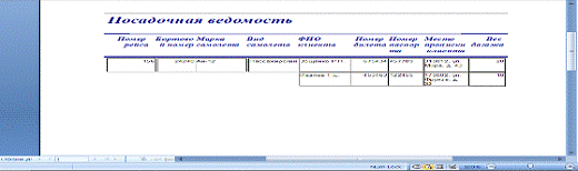 На основе записей из базы данных составляется посадочная ведомость и отчет по