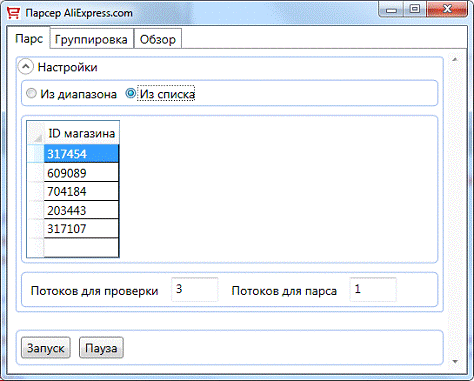 Парс магазинов осуществлялся в 5 потоков. На парс каждой