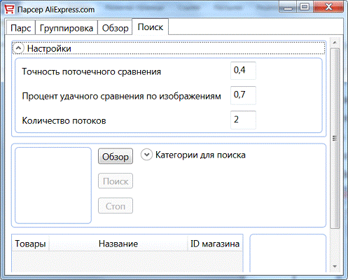 электронных магазинов и выявления групп одинаковых товаров с целью получения