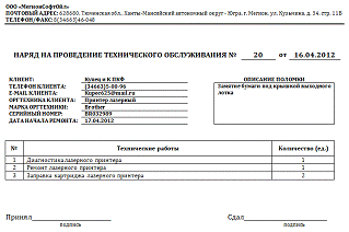 контроля выполнения ремонтных работ оргтехники (ОТ), и предоставления услуг по